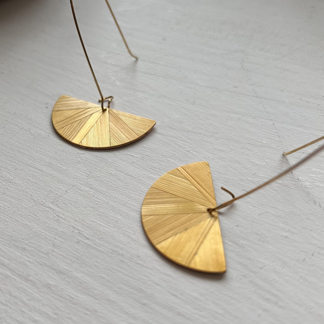 Boucles d'oreilles demi-rond en marqueterie de paille