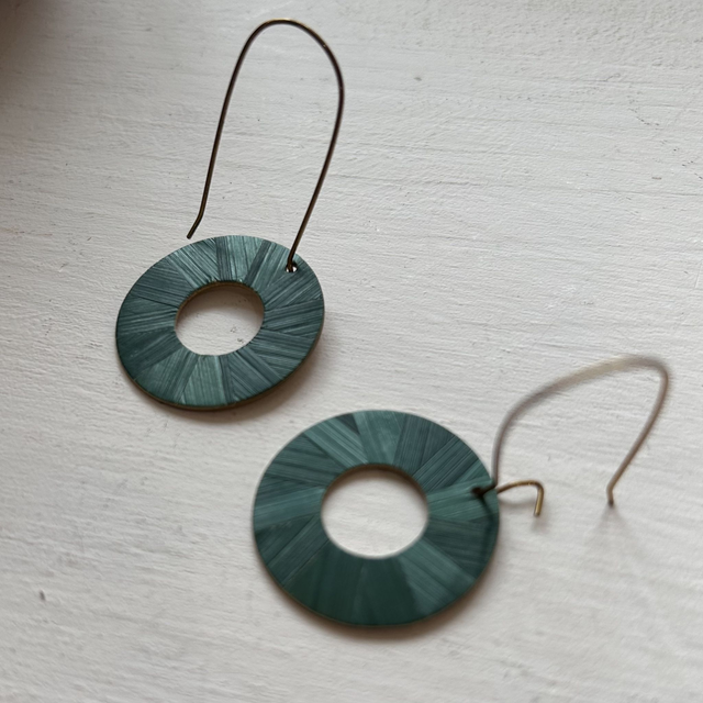 Boucles d'oreilles rondes en marqueterie de paille