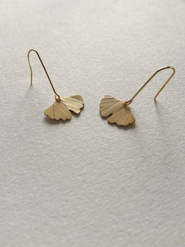 Boucles d'oreilles gingko en marqueterie de paille de seigle